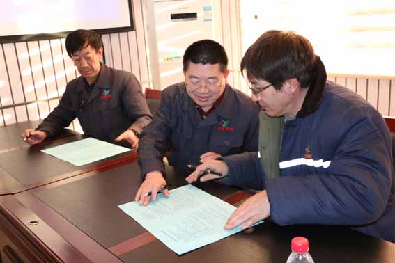 公司總經(jīng)理佟國(guó)山、公司副總經(jīng)理兼工會(huì)主席邱延軍與生產(chǎn)單位簽訂2016年安全生產(chǎn)目標(biāo)責(zé)任狀