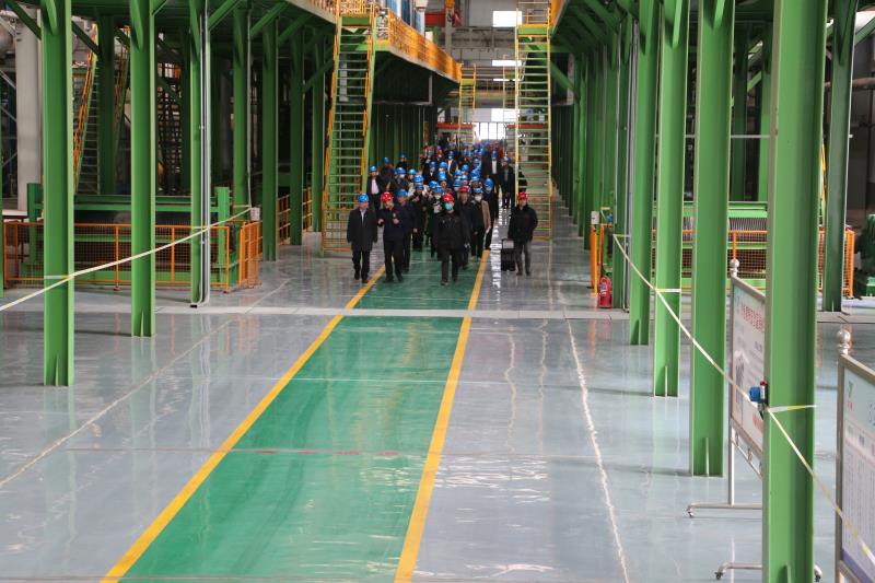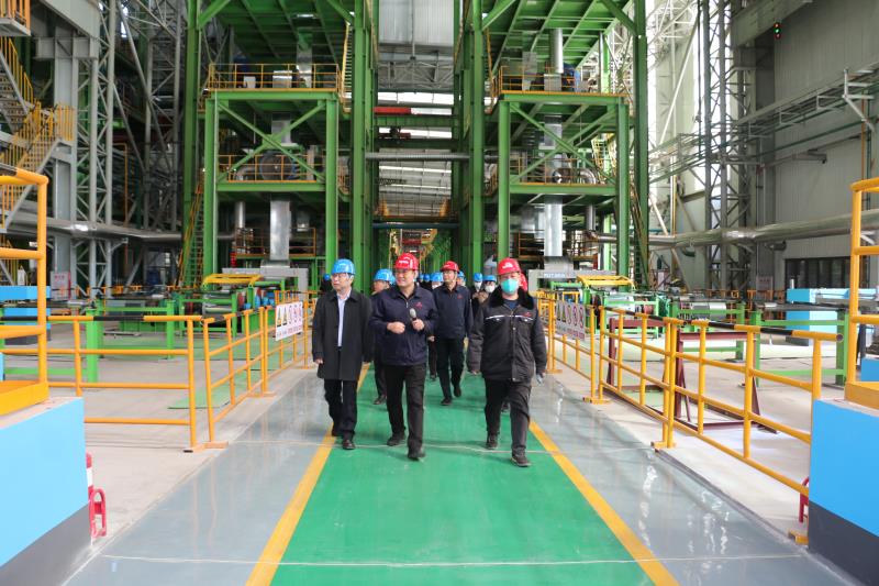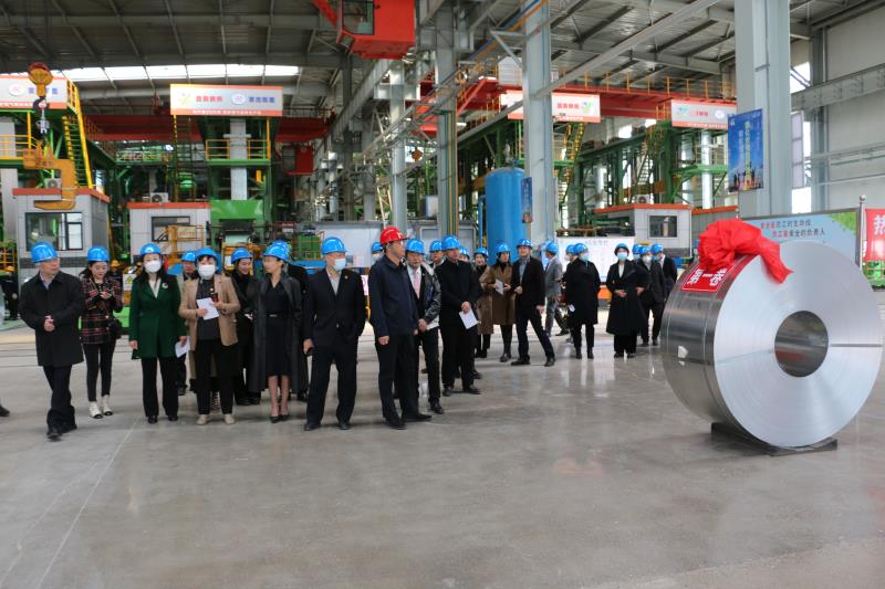 考察團(tuán)一行參觀了我公司新建年產(chǎn)200萬(wàn)噸冷軋、鍍鋅項(xiàng)目,在劉欣書(shū)記的引導(dǎo)下,各位委員先后參觀了原料庫(kù)、酸軋車(chē)間、鍍鋅車(chē)間、成品庫(kù),了解了黑色的熱軋帶鋼是如何經(jīng)過(guò)酸洗、冷軋、鍍鋅蛻變?yōu)楣饬恋腻冧\帶鋼整體生產(chǎn)工藝。