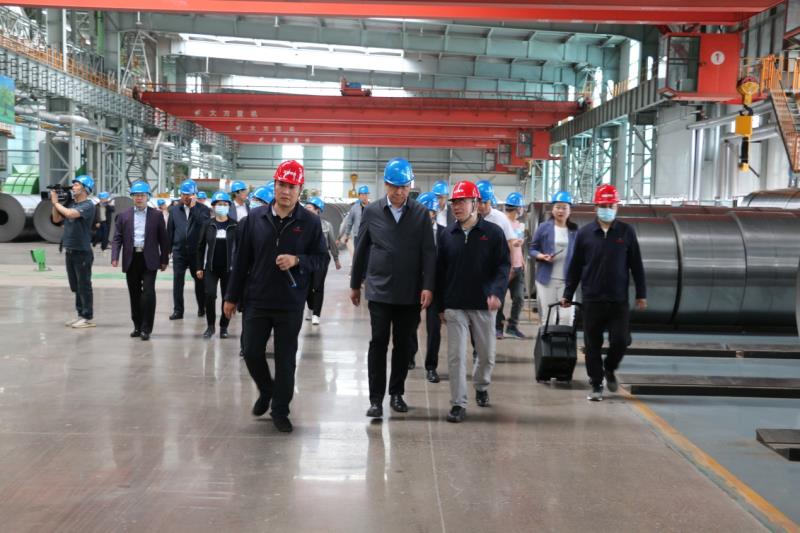 5月21日上午,觀摩團(tuán)一行在市委常委、統(tǒng)戰(zhàn)部部長(zhǎng)孟和巴特爾的帶領(lǐng)下來(lái)到我公司。公司總經(jīng)理佟國(guó)山、黨委書(shū)記劉欣、黨委副書(shū)記李曉杰在現(xiàn)場(chǎng)迎接,并陪同觀摩團(tuán)參觀了公司年產(chǎn)200萬(wàn)噸冷軋鍍鋅一期項(xiàng)目。劉欣書(shū)記代表公司詳細(xì)介紹了該項(xiàng)目的生產(chǎn)工藝流程,讓觀摩團(tuán)成員了解了黑色的熱軋帶鋼蛻變?yōu)楣饬恋腻冧\帶鋼的過(guò)程。